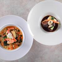 【Casual Dinner】国産牛ステーキ、前菜盛り合せ、スープ 全4皿+ドリンク2杯+カフェ+メッセージプレート(ご褒美セール2割引) @ STITCH/コートヤード・バイ・マリオット大阪本町