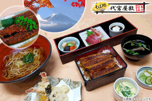 51%OFF【3,500円】≪【TVでも紹介♪古民家風のたたずまい】テラス席ではペット同伴可☆世界遺産から車で5分!伊豆観光でランチは美味しい『うなぎ』をご堪能あれ☆当店自慢の手打ちそば、お刺身、天ぷらまでも愉しめる絶品御膳☆/特選代官うな重御膳≫【ランチ限定】