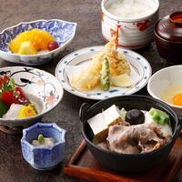 【黒毛和牛すき煮御膳】すき煮、天麩羅、お造りなど+抹茶葛餅+メッセージプレート(ご褒美セール★20%OFF) @ 日本料理さざんか/ホテル イースト21東京 ~オークラホテルズ&リゾーツ~