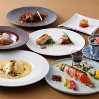 【平日限定】魚or肉の選べるメイン!中国料理×フランス料理全6皿+カフェ付き(ご褒美セール★10%OFF)【ランチ】 @ THE DINING シノワ唐紅花&鉄板フレンチ蒔絵/浅草ビューホテル